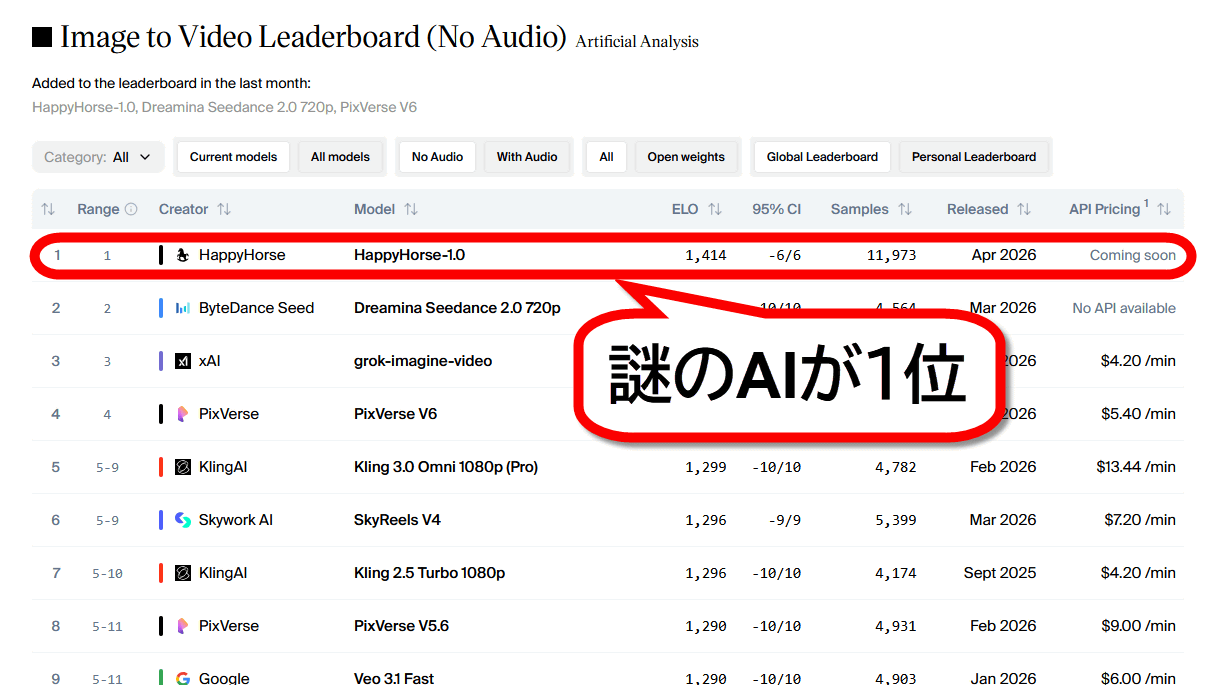 謎の動画生成AIモデル「HappyHorse-1.0」が匿名テストで世界最高性能を達成