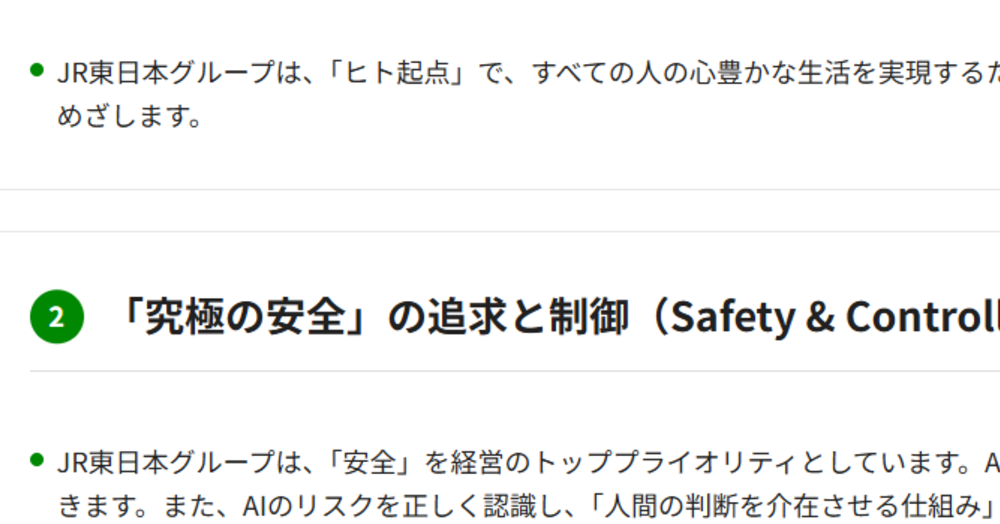 JR東日本グループが「AIポリシー」公表 積極活用+安全確保、「人間の判断を介在させる」