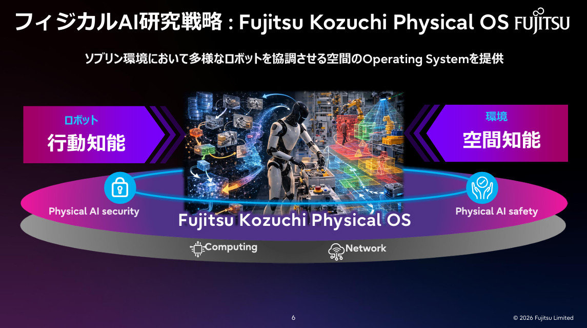 富士通がフィジカルAIのOSを開発し、2026年から実証展開すると発表しました。